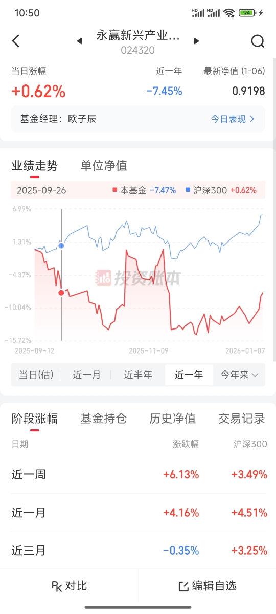 上证指数站稳4000点啦,市场进入新阶段,拿住好基等吃肉! 永赢新兴产业024320主投北交板块,今天估值又涨0.62%,近一个月收益率6.09%,经理擅长买景气度高的个股,业绩稳,这基是知名经理欧子辰掌管,期待他给基民带来好业绩。