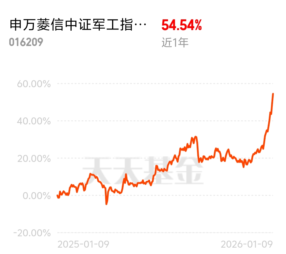 军工行业出口产品技术含量提升,从低端向高端转型,竞争力增强。商业航天不负众望继续启航,地缘因素支撑,申万菱信中证军工指数 (LOF) C 近 1 年 54.54%,近 1 周涨近 13 个点,远超同类平均,我继续持有不松手。$申万菱信中证军工指数(LOF)C$