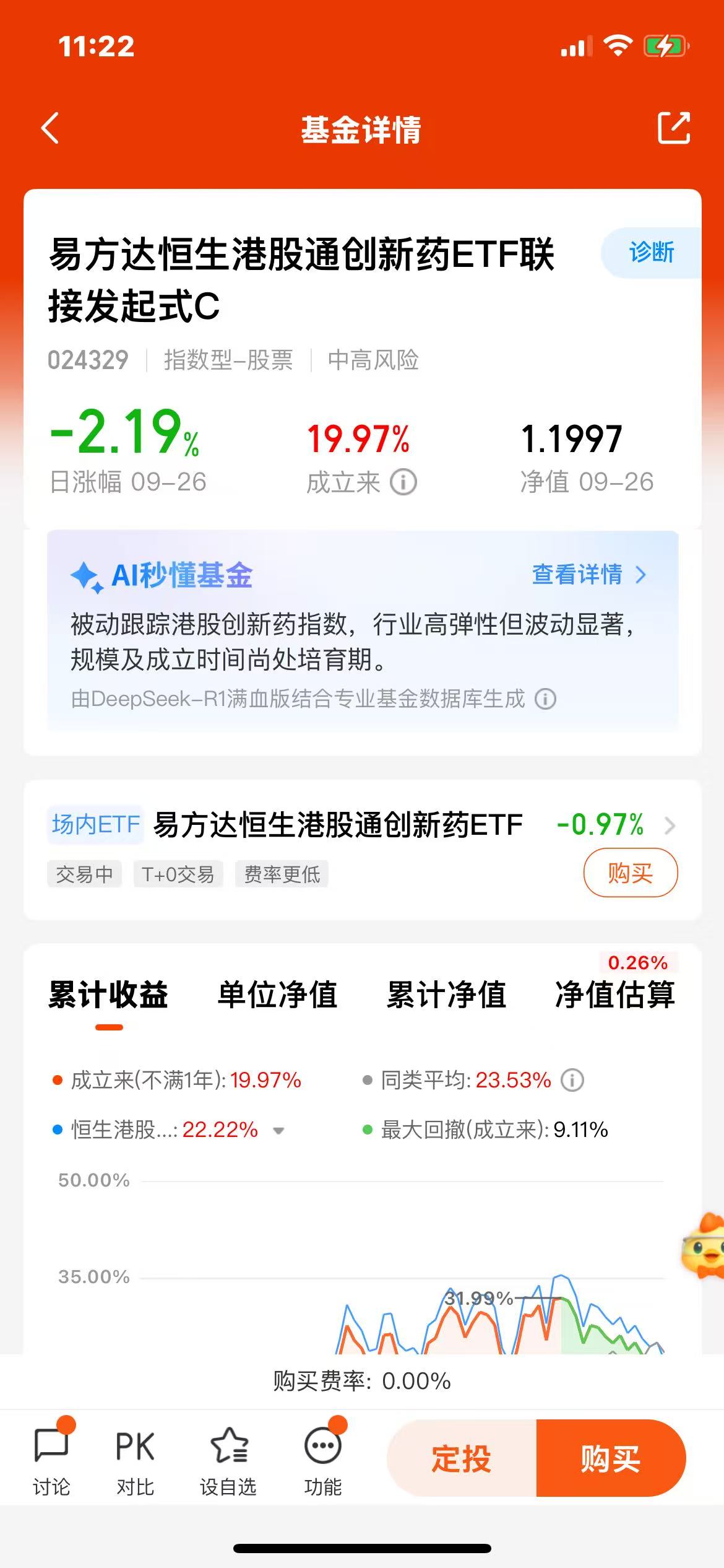 $广发港股创新药ETF联接(QDII)C(OTCFUND|019671)$