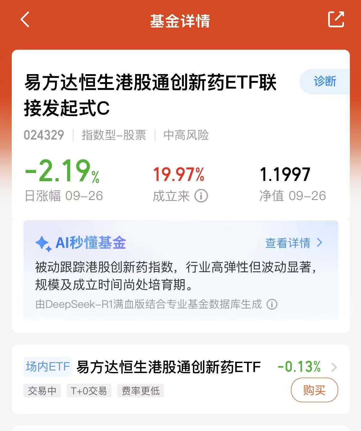 今天A股和港股都反弹啦,盘面是红彤彤的哟,创新药也拉升起来了,目前都翻红啦,$易方达恒生港股通创新药ETF联接发起式C(OTCFUND|024329)$估值上涨1.3%,我觉得前戏100%关税政策主要也是因为情绪面的影响,医药板块是日常刚需,我是长期看好的,这是主要主要跟踪恒生港股通创新药指数的,前景广阔,我继续看好医药方向、