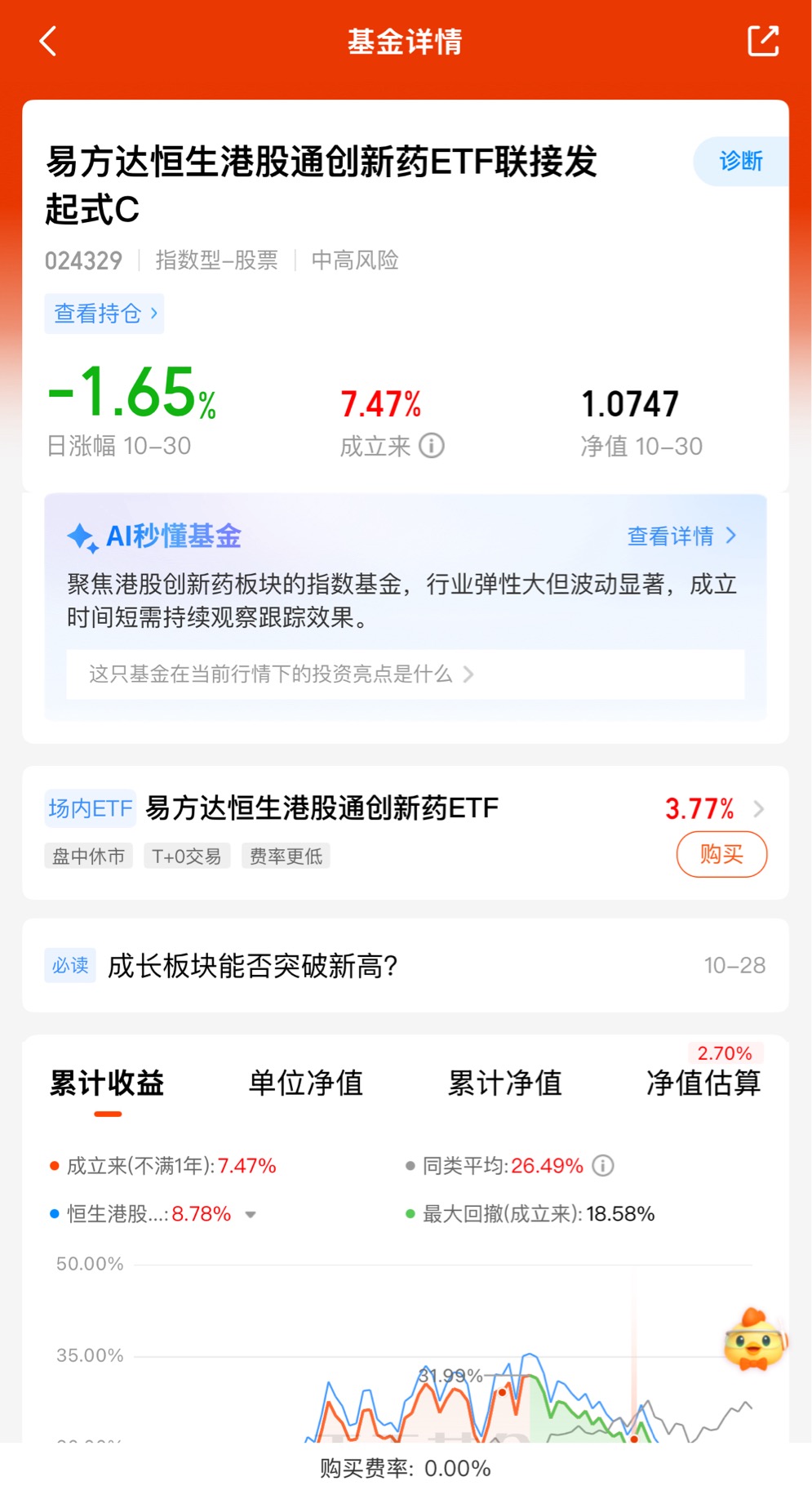 $易方达恒生港股通创新药ETF联接发起式C$ 作为便捷布局港股创新药龙头工具,精准覆盖生物科技、制药等核心企业。