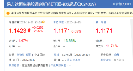 $易方达恒生港股通创新药ETF联接发起式C(OTCFUND|024329)$