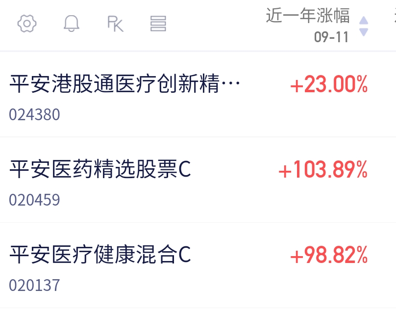 $平安医药精选股票C$ 近1年+103.89%,不错,厉害了