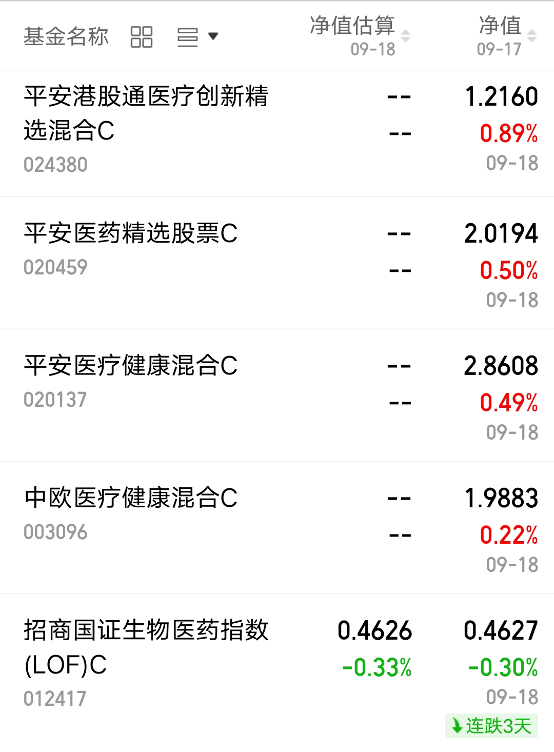 今天大盘行情还是震荡啊,午后三大指数大幅回落,科技也下来了,医药逆势上涨不错啊,看看热门基净值!