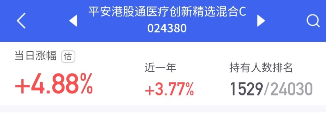 $平安港股通医疗创新精选混合C$ 今日估值涨4.88%,不错