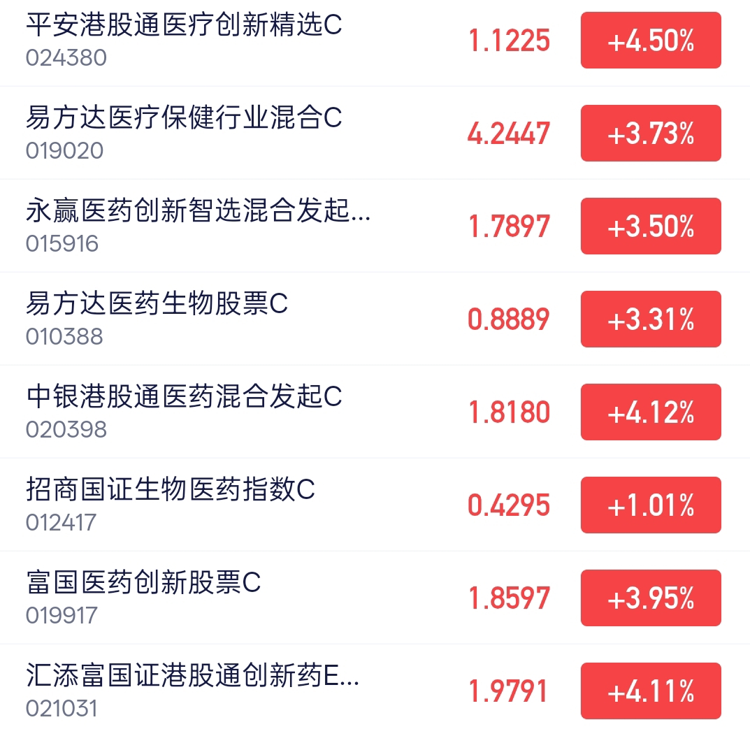 $中银港股通医药混合C$ 估值上涨了4.12%,都很棒呢!