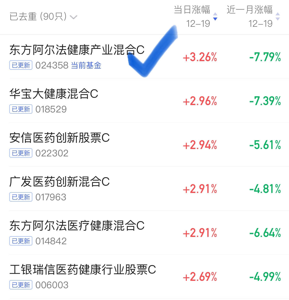 今天医疗板块大涨,阿尔法健康产业混合C单日大涨3.26%,继续领先市场。