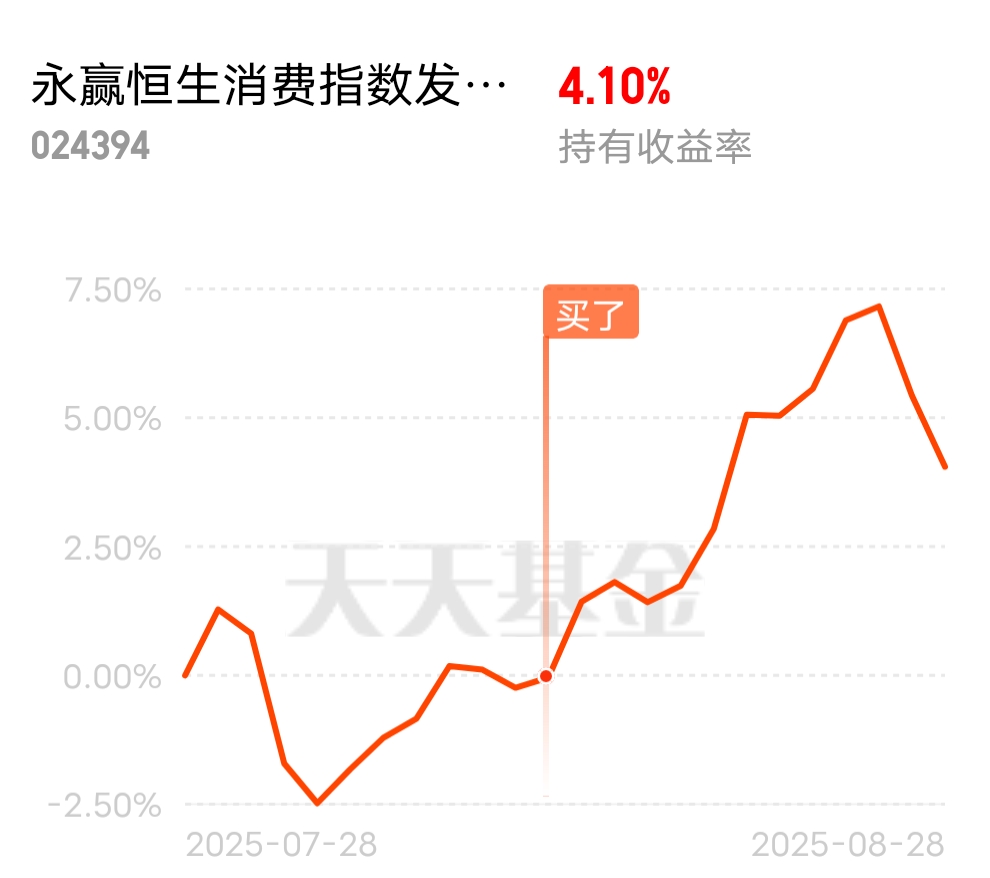 $永赢恒生消费指数发起(QDII)C$消费板块迎来回暖趋势了,继续冲一波