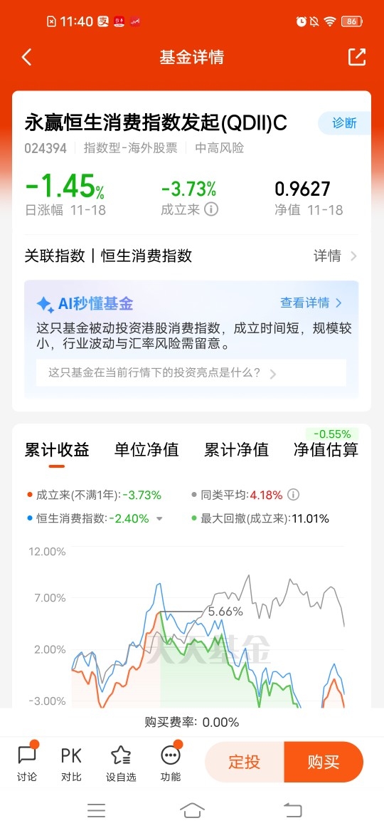 $永赢恒生消费指数发起(QDII)C$ 港股消费的代表性指数恒生消费指数包含了众多国潮、潮玩、服务消费等成份股,能反映当下及未来消费的新潮流、新趋势,与A股消费指数形成优势互补,行业集中度较高,易受消费周期及政策影响。 目前行业估值偏低,提前蹲一波!#腾讯Q3净利润631亿元 如何解读?#