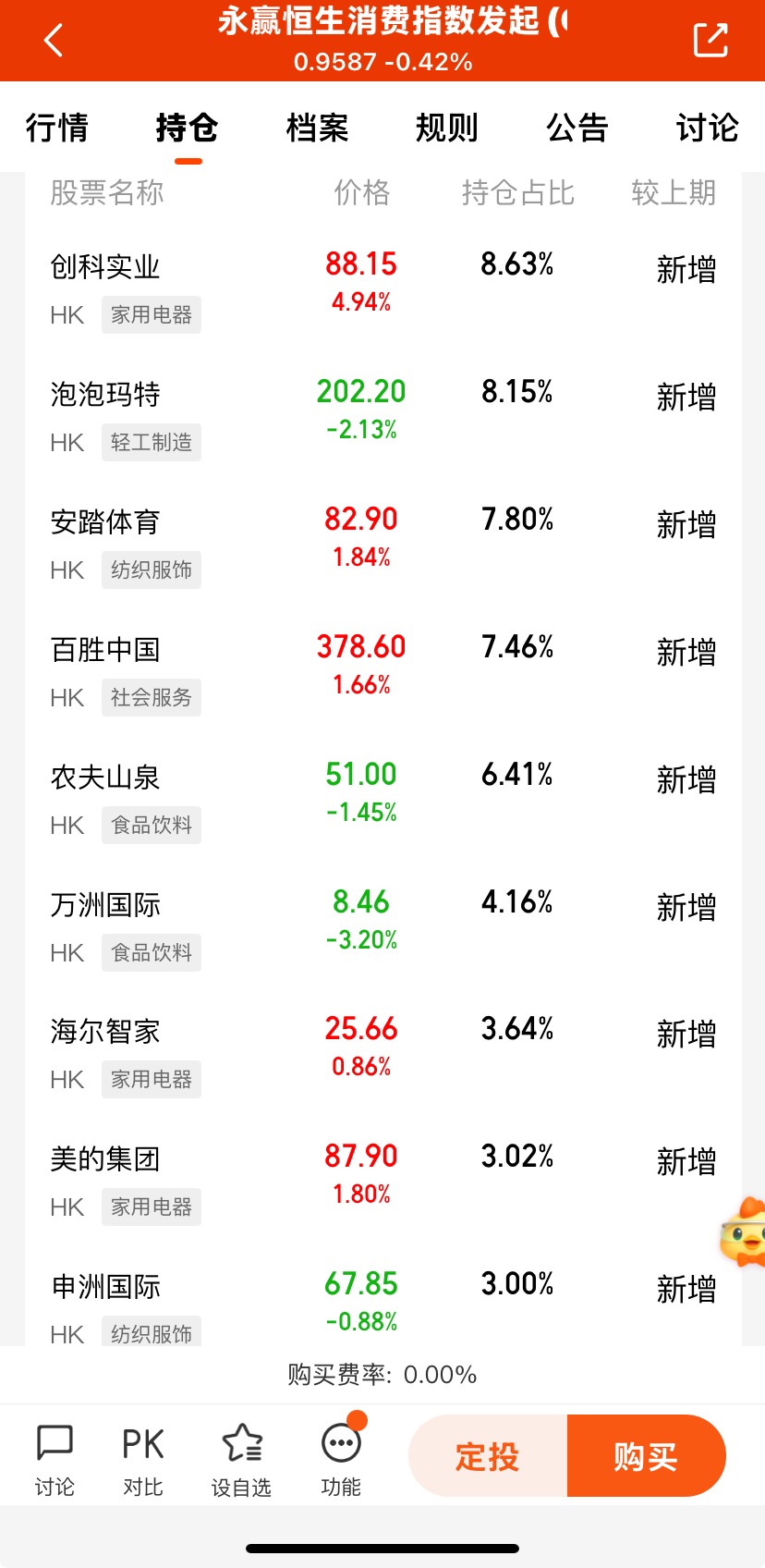 #全球股市集体下跌 你怎么看?# $永赢恒生消费指数发起(QDII)C$ 成立近4个月,近一周收益-2.64%大幅跑赢同类均值-3.51%,目前估值偏低具有一定的估值吸引力。该基金是一只跟踪恒生消费指数的基金,行业覆盖均衡,既包括传统消费领域,如食物饮品、家用电器等,也涵盖了新兴消费趋势,如旅游及消闲设施、其他零售商等,能提供较高的情绪价值,符合年轻人的消费偏好。