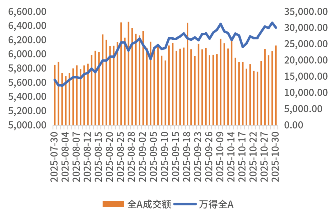 权益市场方面,美联储如期降息25BP,如期宣布停止缩表。但并没有立即开启扩表。鲍威尔承认票委分歧严重,明确表明12月降息远非是板上钉钉的,但这更多是指向票委内部分歧;他依然看重就业下行风险,淡化通胀上行风险;认为信贷风险不具有系统性影响。本次降息之后,年内还有一次降息的预期不变,海外流动性维持中性的判断。海外业绩超预期的科技股股价并未呈现出持续的强势,AI短期的风偏上限受限;美国总量软着陆叙事逻辑中AI的驱动力不足。等待英伟达的业绩指引能否带来新的刺激。国内十五五规划明确了中国经济转型的实现路径:科技自立自强、现代化产业体系建设是重中之重。PMI等经济数据走弱,总量层面尚无政策发力的迹象。