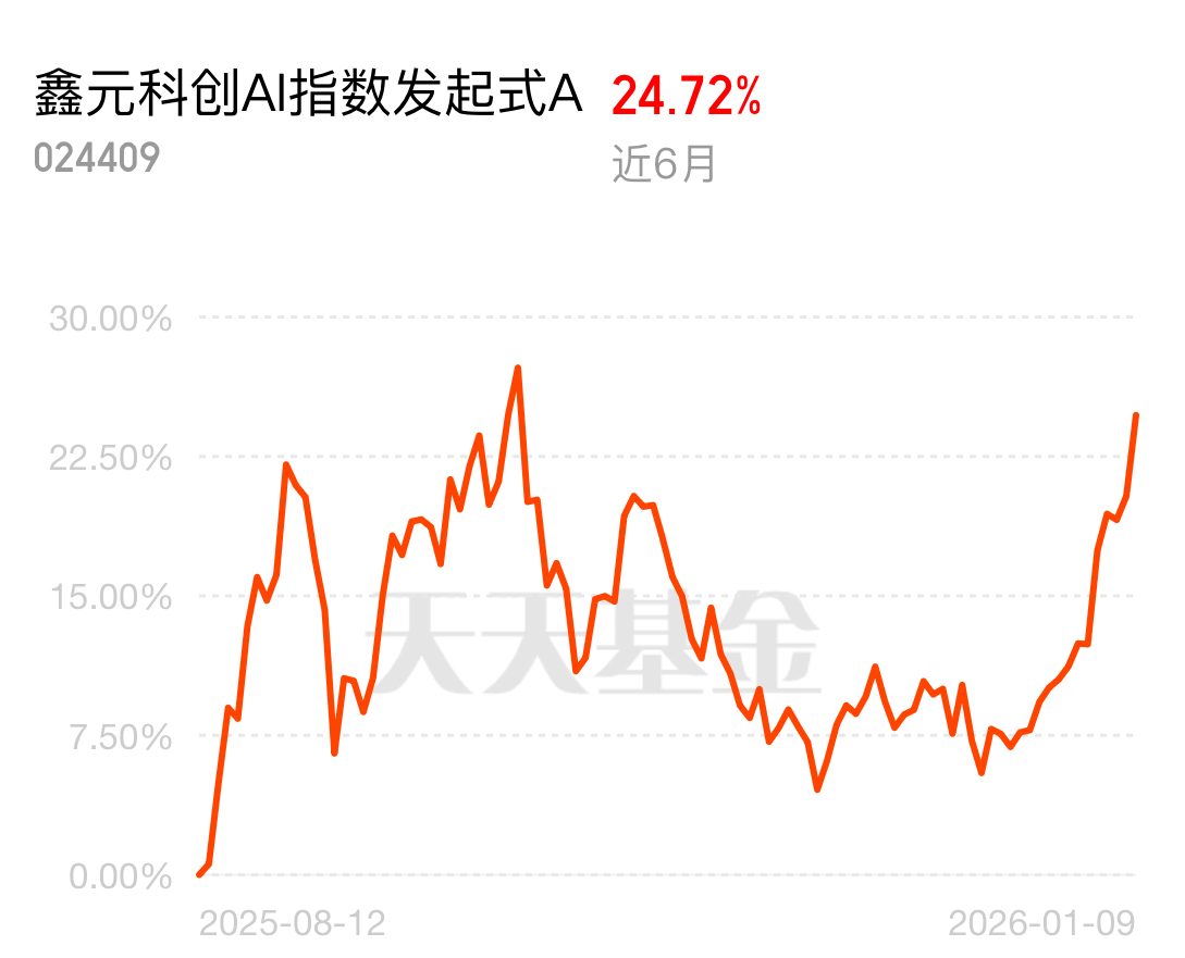 $鑫元科创AI指数发起式A$这波太顶了!01-09日涨3.61%,近半年涨24.