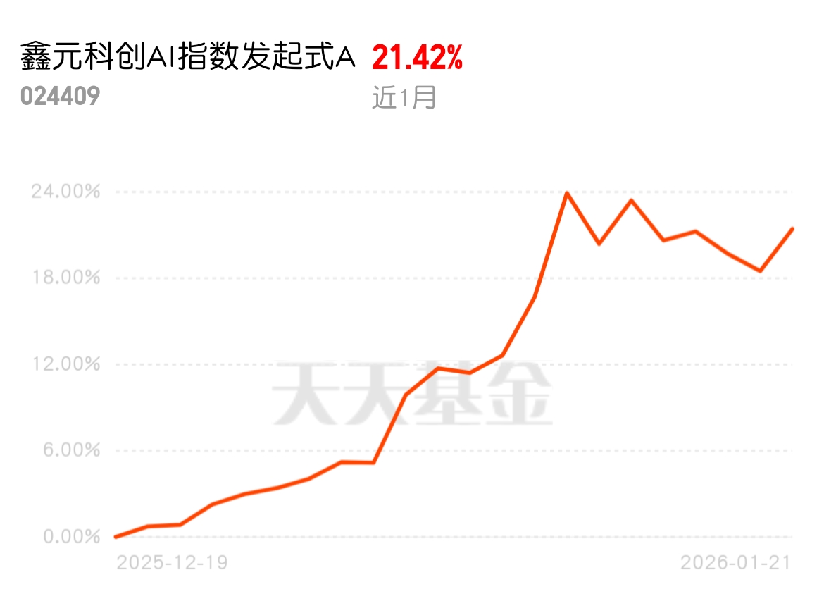 鑫元科创AI指数A近1月涨了21.42%,比同类多赚13个点,近3个月也跑赢一大