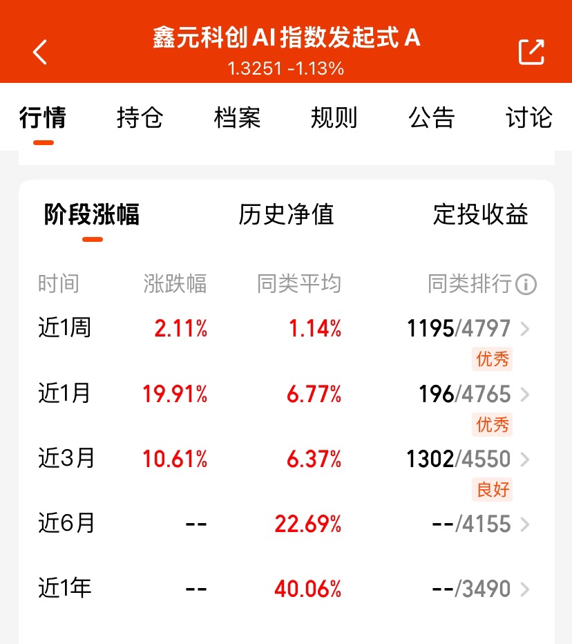 科创AI风口正盛,$鑫元科创AI指数发起式A$紧跟板块行情,持仓聚焦硬核科技标的
