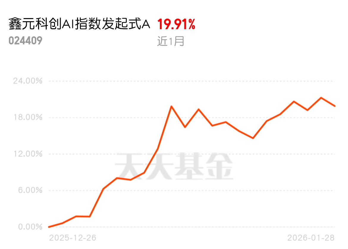 鑫元科创AI指数A最近猛得很!近1个月涨了19.91%,直接把同类平均6.77%