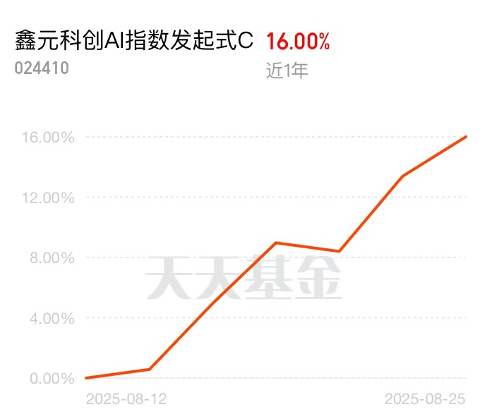 我关注到鑫元基金旗下的$鑫元科创AI指数发起式C(OTCFUND|024410)$$鑫元科创AI指数发起式A(OTCFUND|024409)$,这只基金紧密跟踪上证科创板人工智能指数,通过指数化投资,争取在扣除各项费用之前获得与标的指数相似的总回报,追求跟踪偏离度及跟踪误差的最小化。从其投资范围来看,涵盖了标的指数成份股及备选成份股等众多具有良好流动性的金融工具,投资于股票资产的比例不低于基金资产的 90%,能够充分把握 AI 赛道的投资机会。而且该基金成立于 2025 年 08 月 12 日,目前正处于发展初期,有着较大的成长潜力。