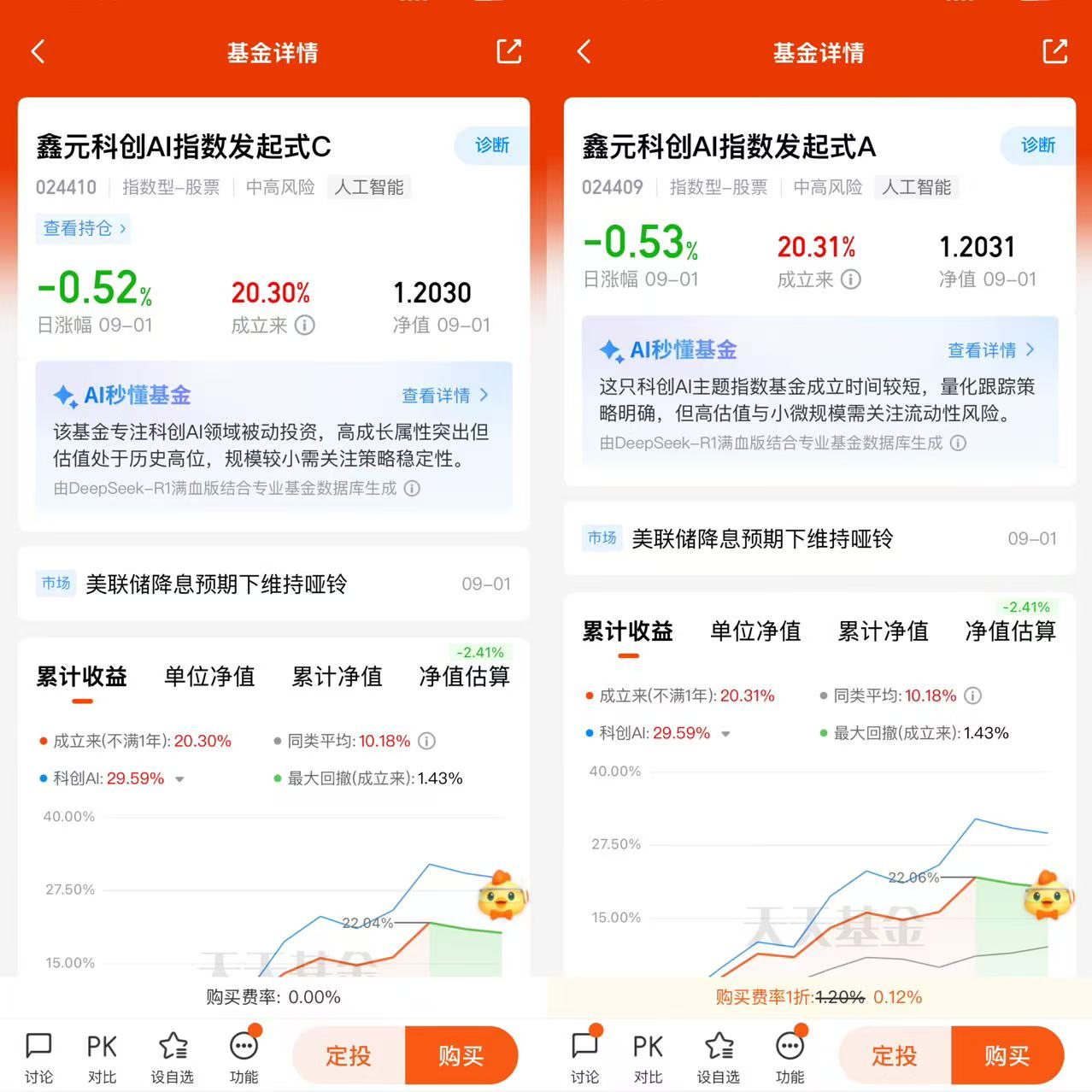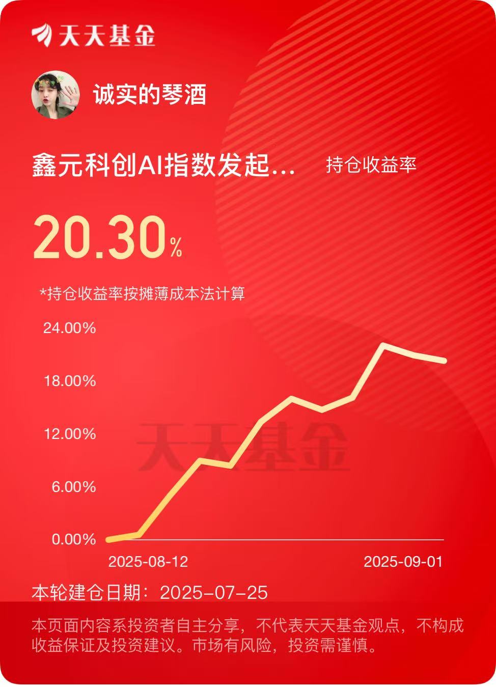 首先我非常庆幸当时发现鑫元科创AI指数发起式C这只宝藏基并且上车了该基金,是的我目前的收益也是非常不错的,把握住了这波行情。2025年7-8月期间,鑫元科创AI指数发起式C基金的发行正值AI产业政策红利和技术突破的双重机遇期。当时市场环境下,科创50指数估值处于历史高位(PE分位97%) ,但科创AI指数市盈率仅为74.07倍,处于发布以来46.59%的相对低估分位,这为新发提供了良好的估值性价比。同时,国务院于2025年7月31日通过《关于深入实施”人工智能+“行动的意见》,明确推进人工智能规模化商业化应用,强化算力、算法和数据供给 ,这一政策为AI产业发展铺就了”高速路”,吸引了大量资金关注AI主题投资。