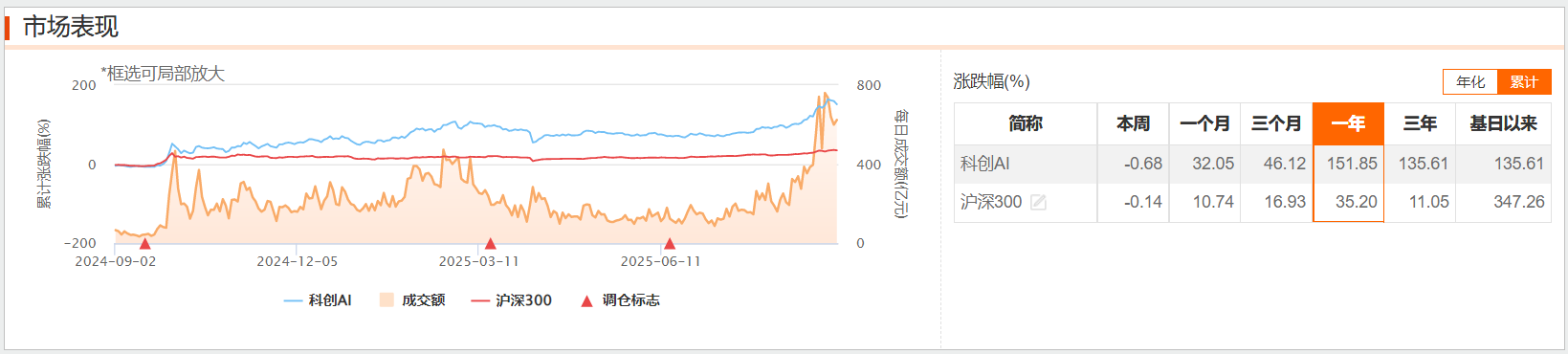 科创AI指数的收益风险特征鲜明。从收益角度看,该指数近一年涨幅达151.85%,远超同期沪深300指数(35.20%)和中证人工智能指数(82.36%) ,显示出极高的弹性。从风险角度看,指数年化波动率约39% ,最大回撤25.36% ,属于高风险高收益的资产类别。基金方面,鑫元科创AIETF(跟踪同指数)近1月跟踪误差仅为0.022%,成立以来最大回撤4.45%,体现了基金经理刘宇涛在指数跟踪方面的专业能力。