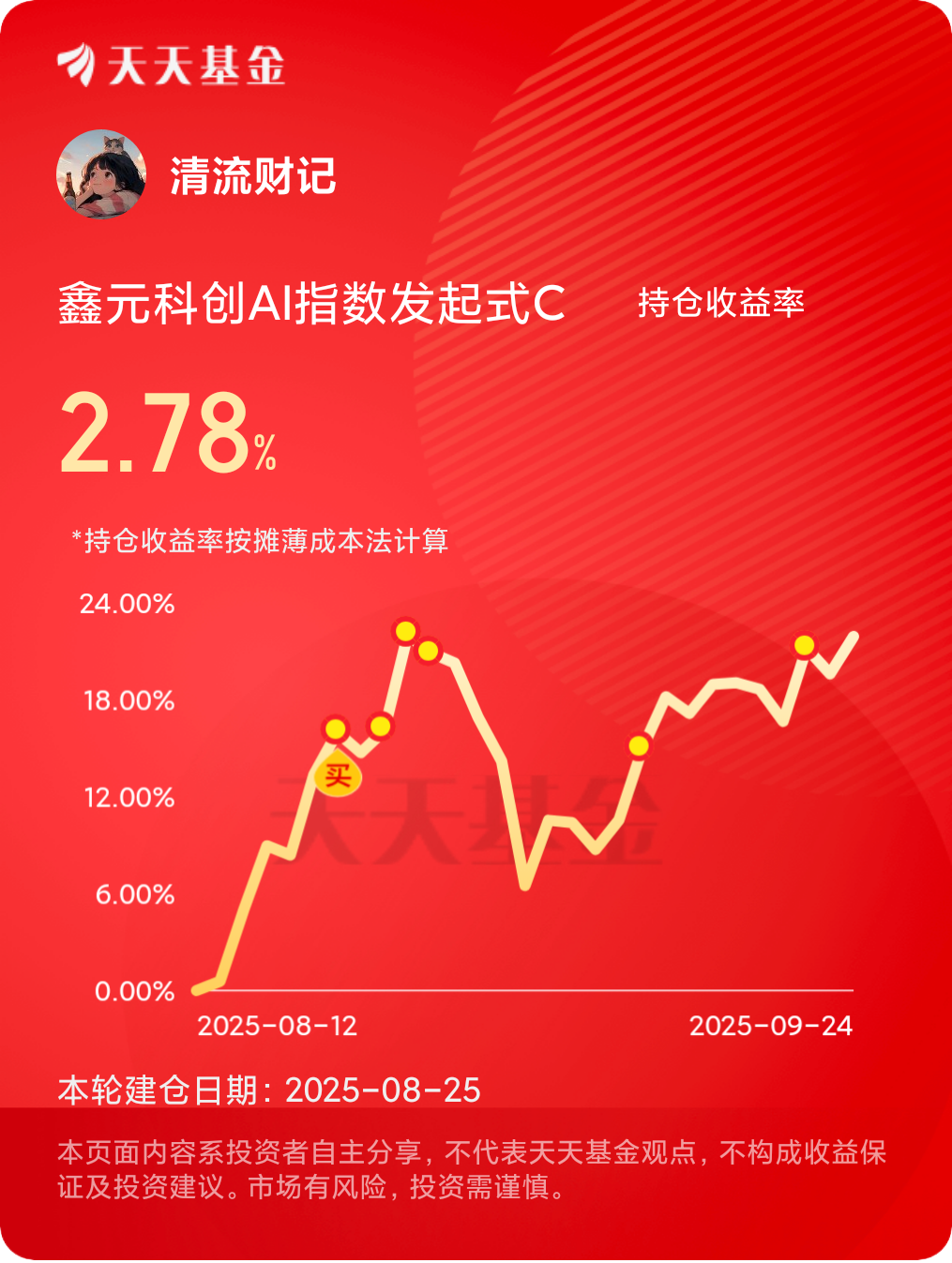 这只基金后面长期发展潜力还是很大,我后续考虑逢低加仓,长期看好人工智能的表现。$鑫元科创AI指数发起式C$ #晒实盘# #晒收益#