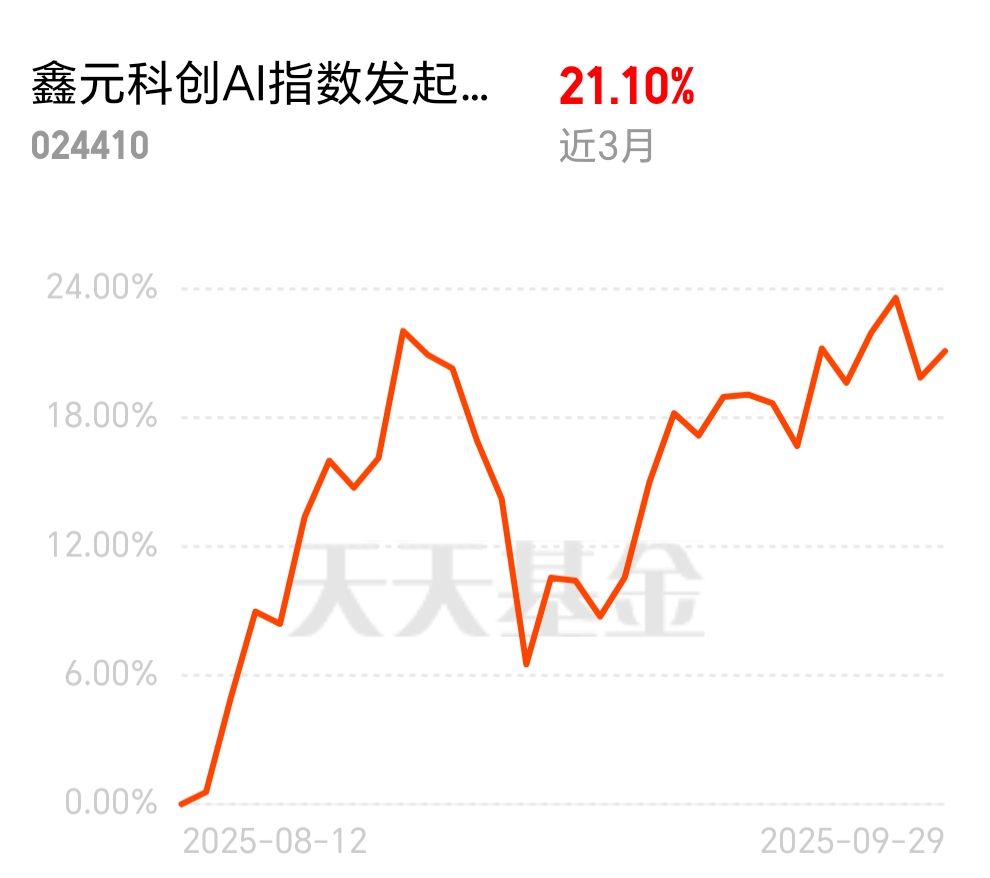伙伴们,大涨了,这个$鑫元科创AI指数发起式C$ 今天估值涨幅2.68%左右,这上攻潜力太强了,趁这波趋势来了加仓啊