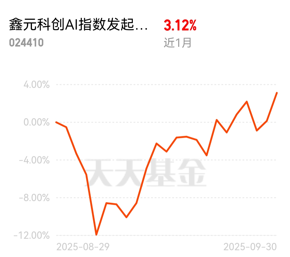 $鑫元科创AI指数发起式C$今天估值又大涨2.06%,紧密跟踪科创AI指数,覆盖