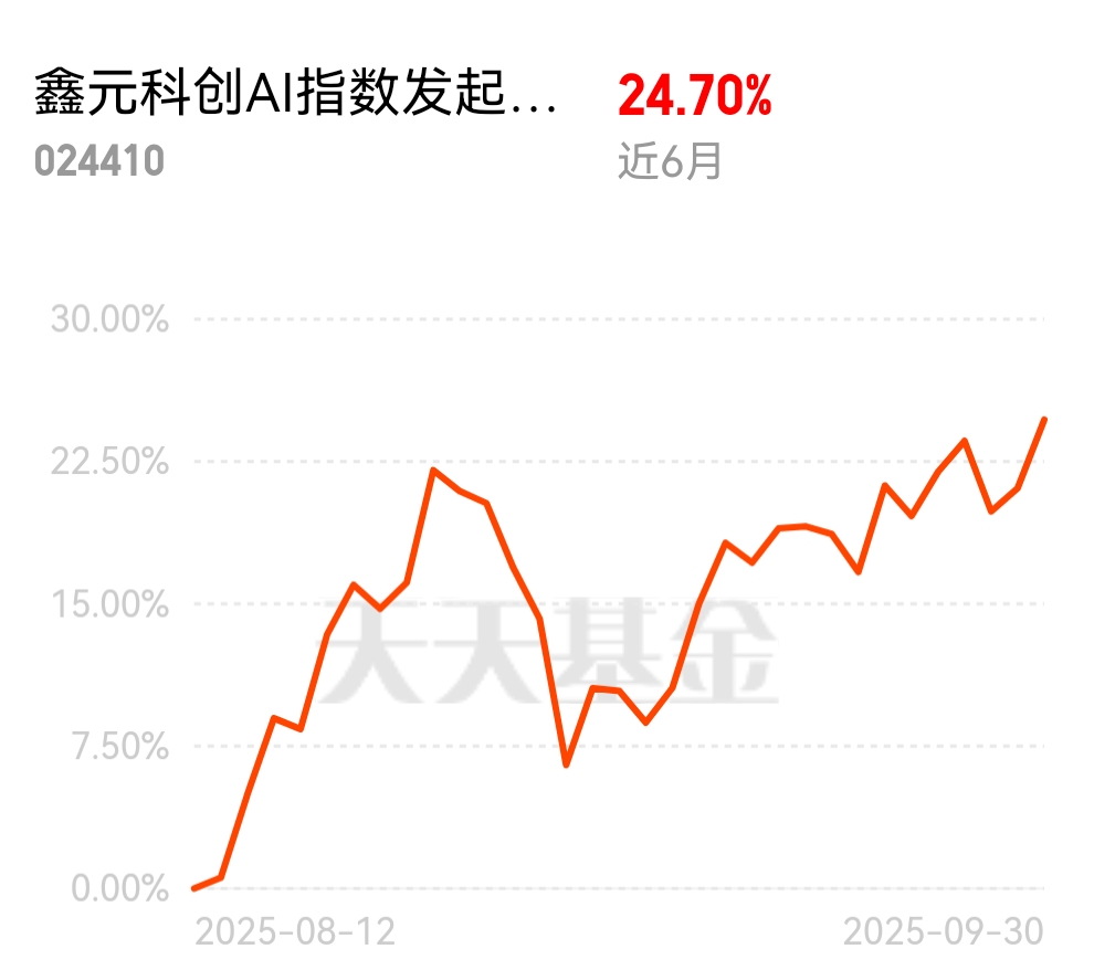 不错啊,$鑫元科创AI指数发起式C$ ,近三月涨24.70%,高弹性,高透明,聚焦科创板AI龙头企业,爆发力很强!