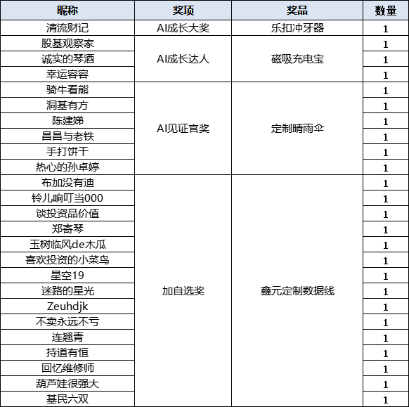 大家好,本次活动圆满结束啦,感谢大家对鑫元基金财富号及产品的关注!中奖名单新鲜出炉,恭喜以下中奖伙伴!