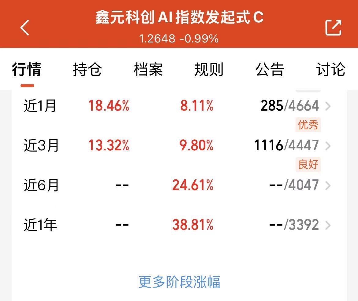 $鑫元科创AI指数发起式C$ 近3月涨13.32%,近1月涨18.46%,跑赢同类。专抓AI核心机会,逻辑清晰,我已加仓。
