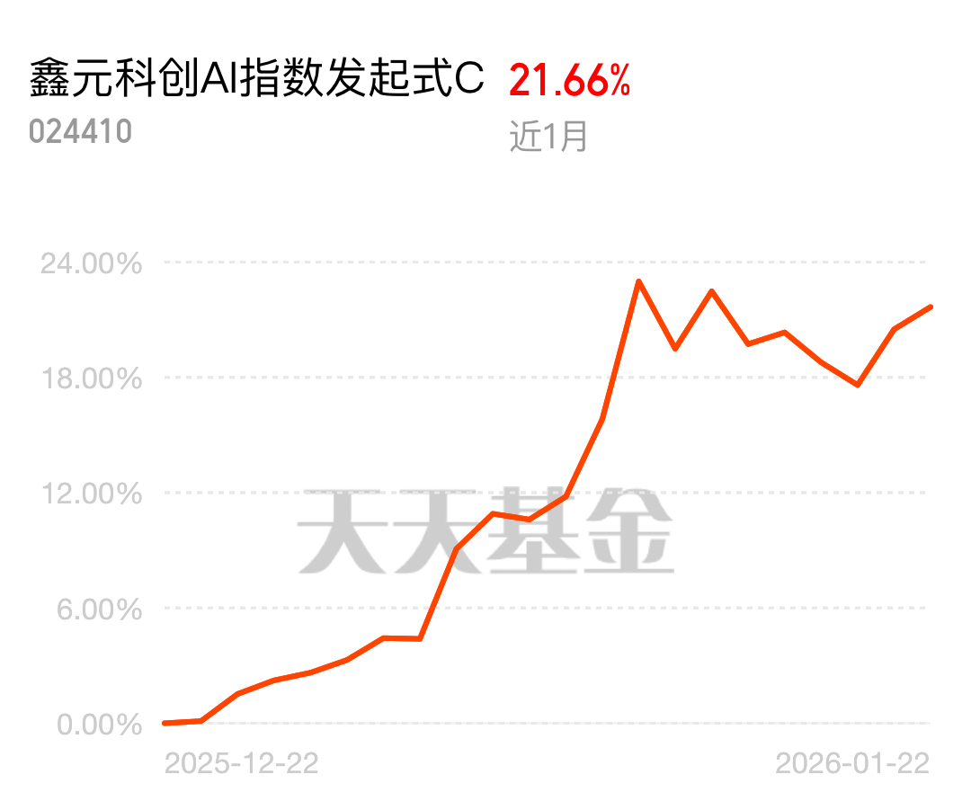 $鑫元科创AI指数发起式C$ 今日涨0.96%,净值1.3084稳涨,近1月直接涨超21%,科创AI的风口稳稳接住了!