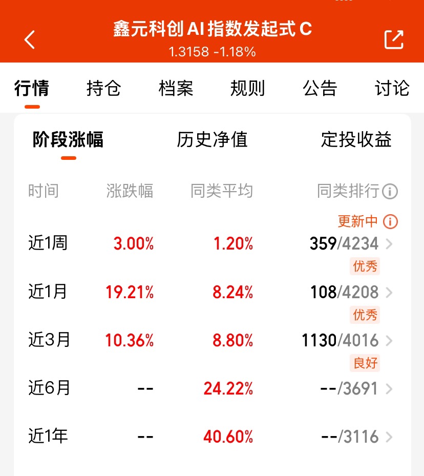 $鑫元科创AI指数发起式C$近一月涨幅19.21%,今日小回撤纯属蓄力,AI主升
