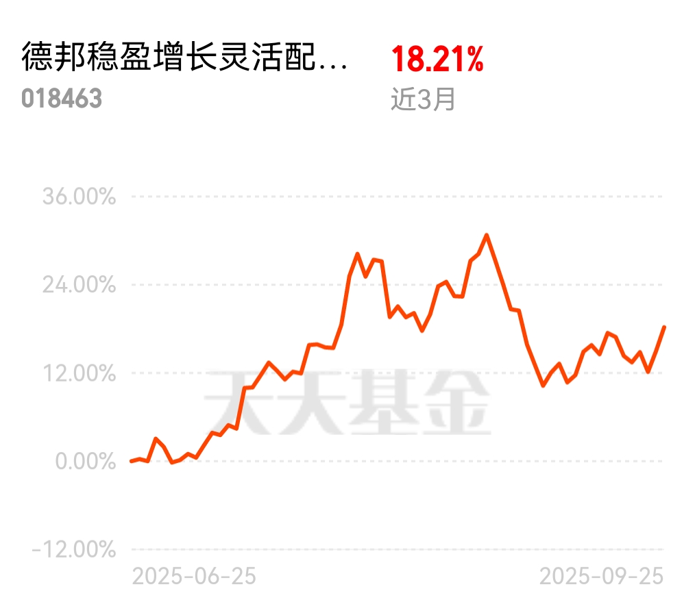最近市场资金青睐稳健型产品,灵活配置基金表现好,德邦稳盈增长灵活配置混合C近3个月18.21%,赶紧上车别犹豫。$德邦稳盈增长灵活配置混合C$