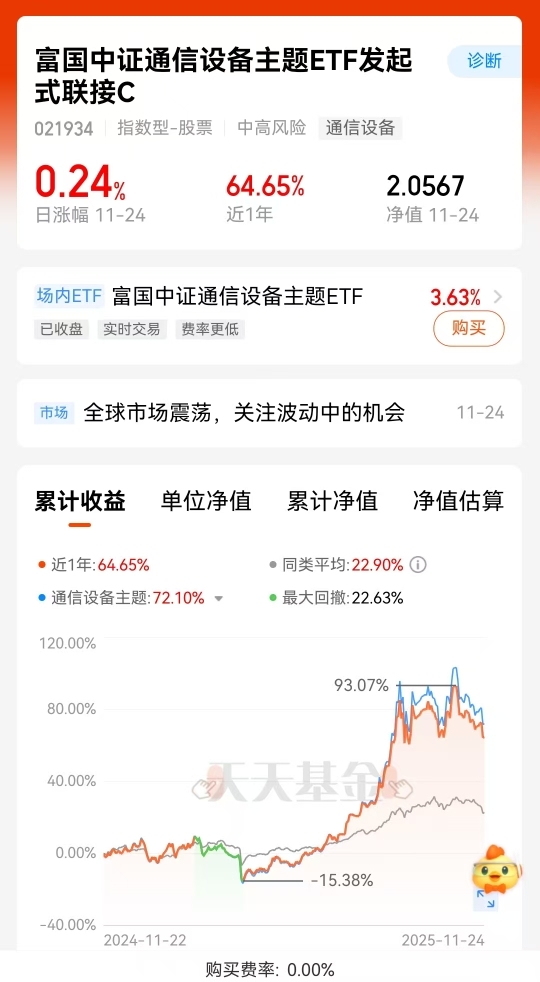 当前在看通信设备方向,富国中证通信设备主题ETF联接C近6个月涨了77%、1年6