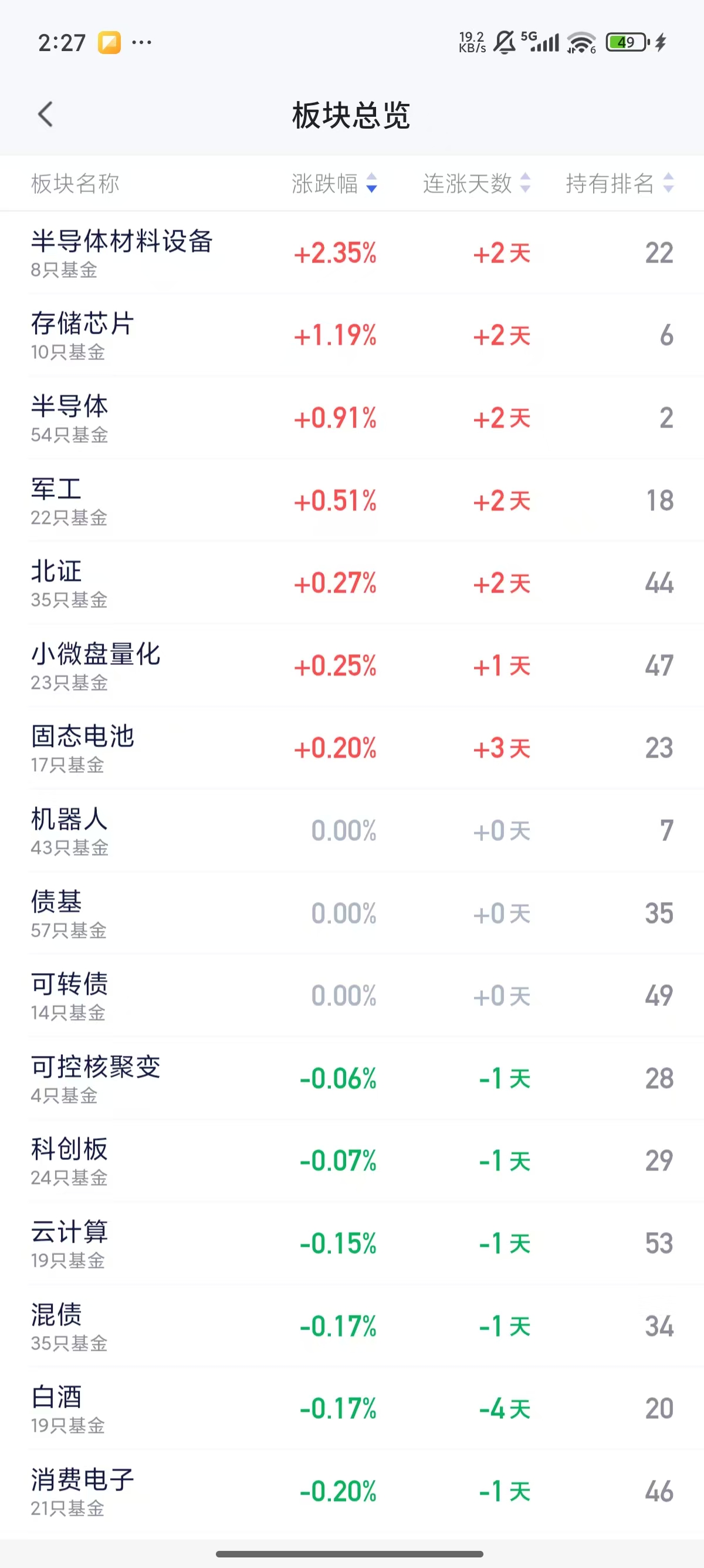 CPO板块:目前跌1%左右,日线MACD红柱延长,均线多头排列,5/10/20日线上扬,支撑明显,短线多头动能强,趋势是向上。所以思路就还是—逢调低吸为最优解!兜兜今天将万佳臻选和财通成长调仓到前几天所说那只CPO基!