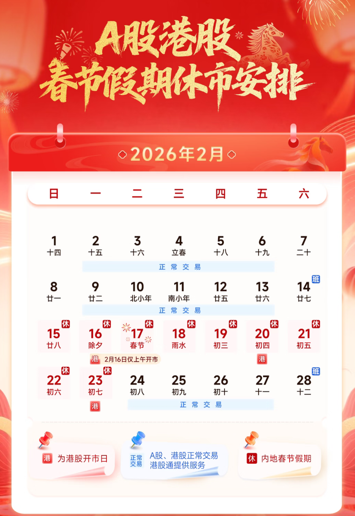 下图为港股和A股春节交易时间分享,美股正常开市!