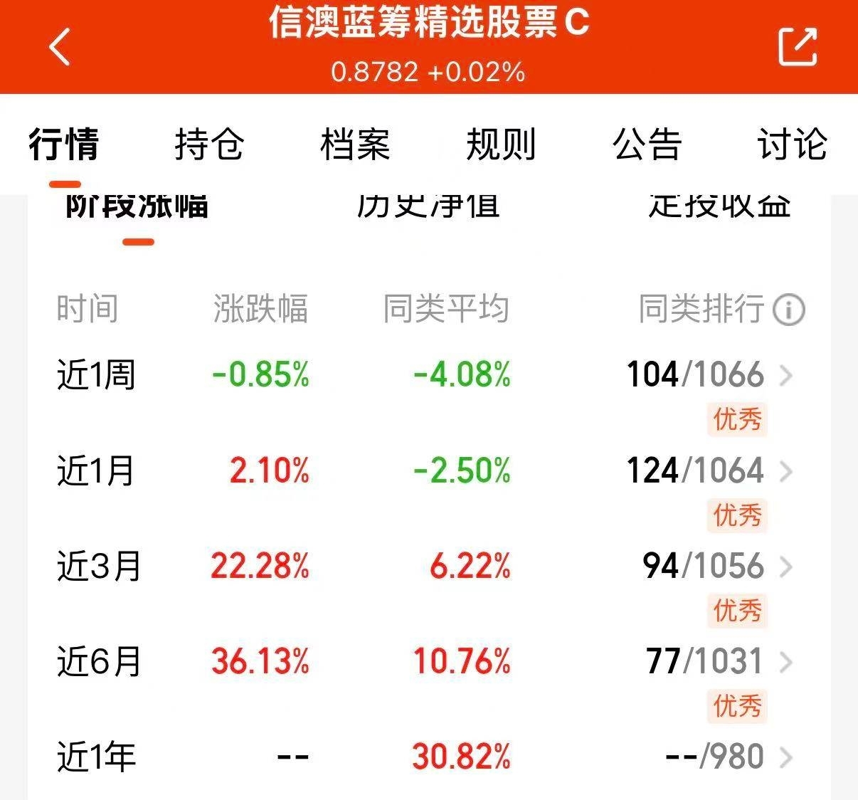 市场震荡调整,有色、金融依旧是我看好的主线,信澳蓝筹精选股票C精准布局这两大方向,成立不到一年收益突破50个点,今天继续逢低补点,蹲一波主升行情。