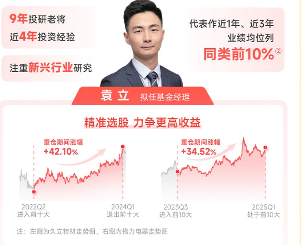 另一位基金经理袁立则是择时好手,他过去调仓时,手里的重仓股都有不少涨幅。