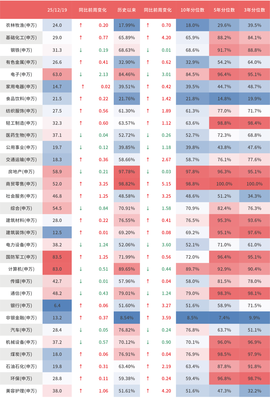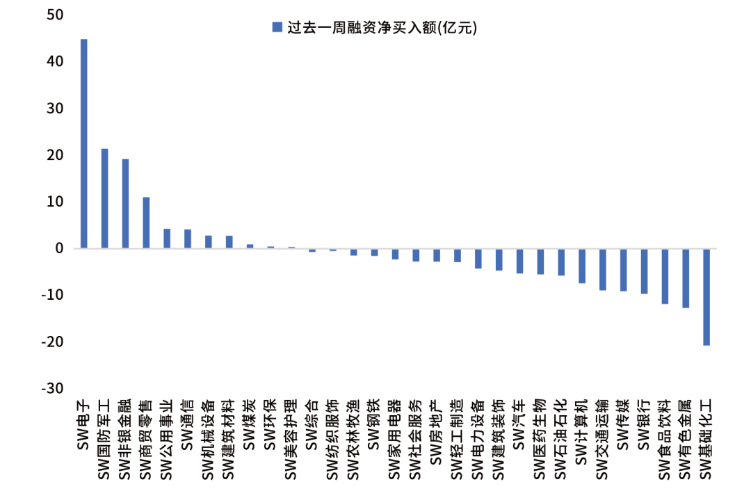 12月18日,两融资金占比为10.21%,12月11日为9.85%,反映出杠杆资金加仓意愿略有提升。截至12月19日,上周融资净买入的前三行业为电子、国防军工、非银金融。