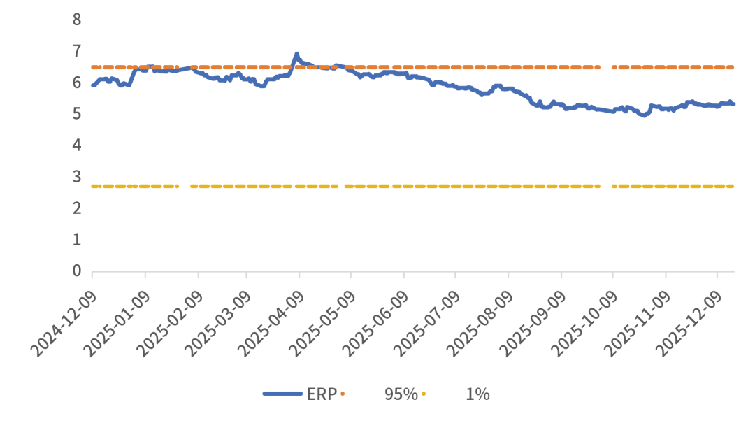 从股债性价比大周期的角度,目前权益相对固收的风险溢价为5.33%,处于历史53.82%的分位数,所以从此时点看,长期持有仍是好选择。