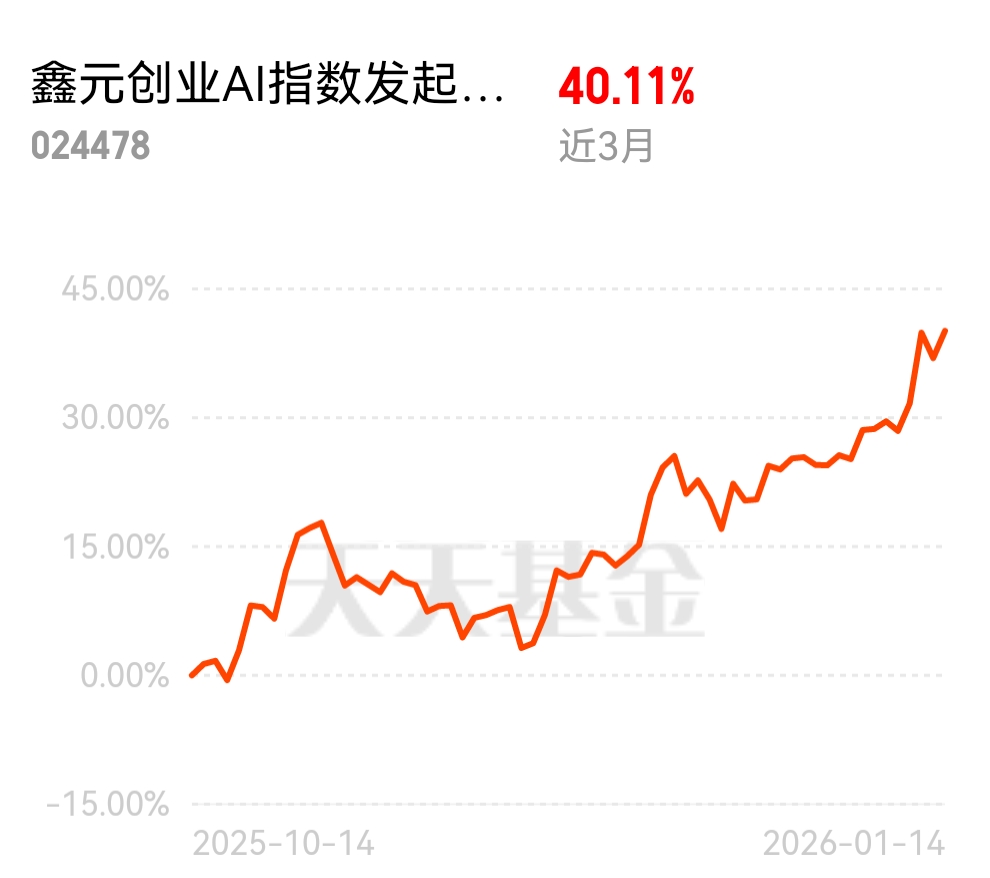 $鑫元创业AI指数发起式A$ 锚定创业板AI赛道!最新净值1.3273,近3月涨40.11%、单日飙2.31%,网罗硬核龙头,指数化布局科技红利