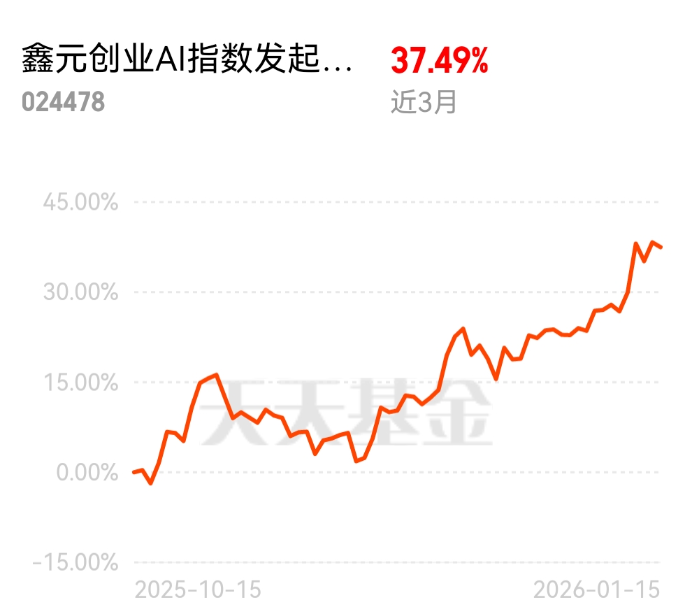 $鑫元创业AI指数发起式A$爆发力拉满!近3月涨37.49%、近1月涨15.64