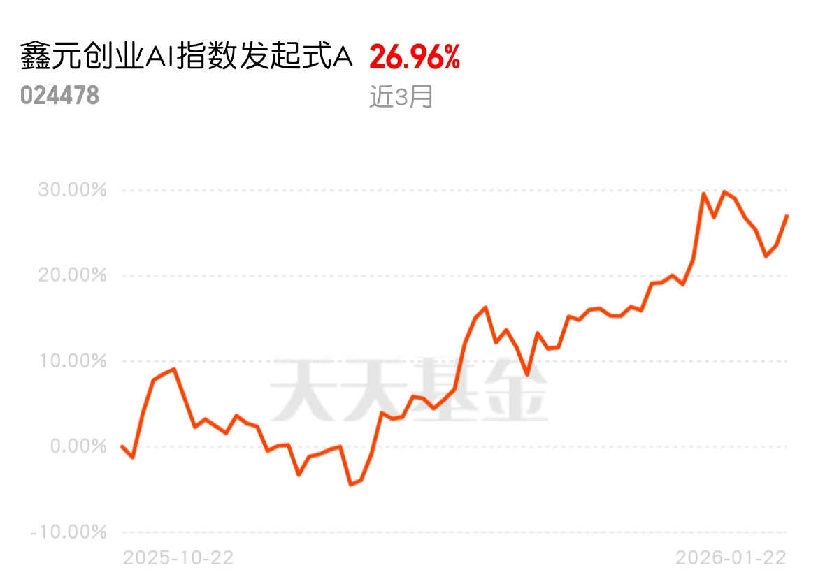 鑫元创业AI指数A近3月飙涨26.96%,远超同类平均的8.11%!近1月也拿下