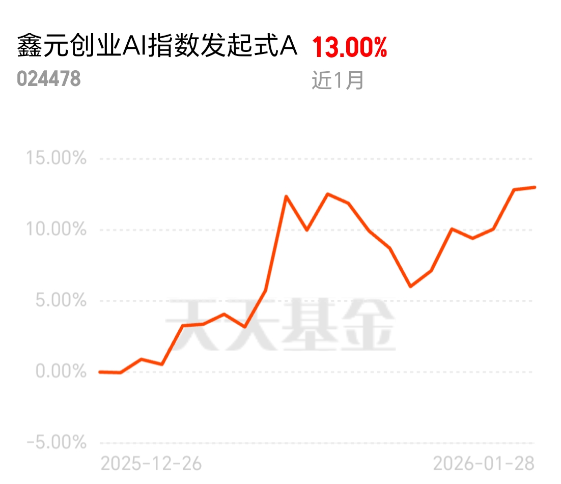 鑫元创业AI指数发起式A日涨0.15%,近1月飙升13.00%紧抓AI产业风口,