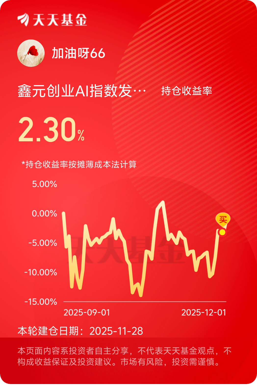 最近大A有点反复,不过咱这基整体比较分散,长期持有也还不错$鑫元创业AI指数发起式C$ #晒收益#