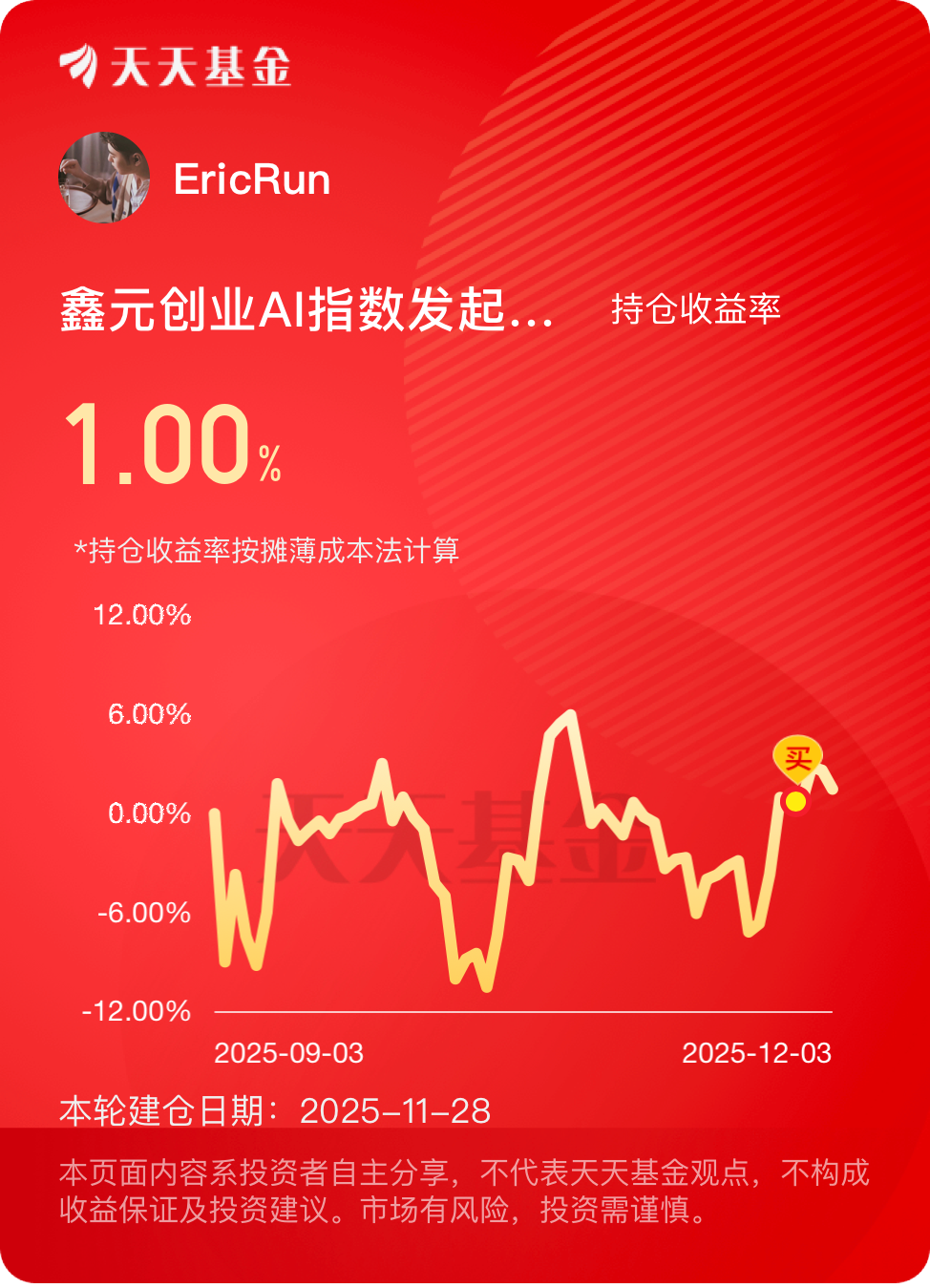 虽然市场最近震荡但基本面没有问题,我更看好大科技,逢低加等回暖$鑫元创业AI指数发起式C$ #晒收益#