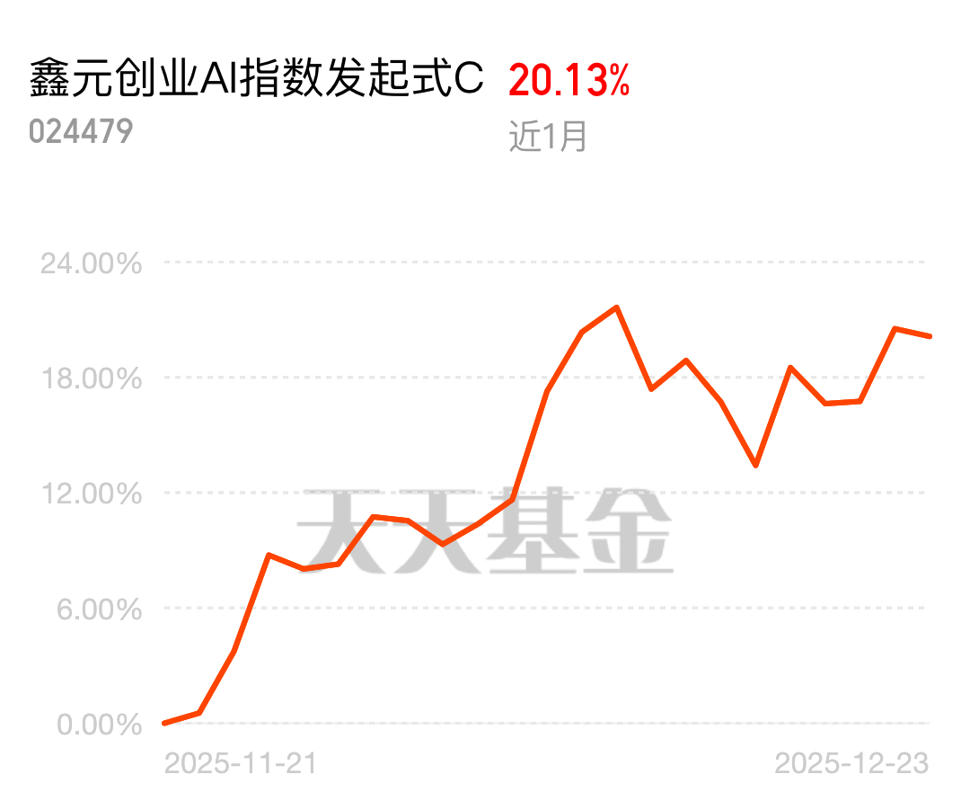 AI赛道火力全开!$鑫元创业AI指数发起式C$近1月暴涨20.13%,近3月狂揽
