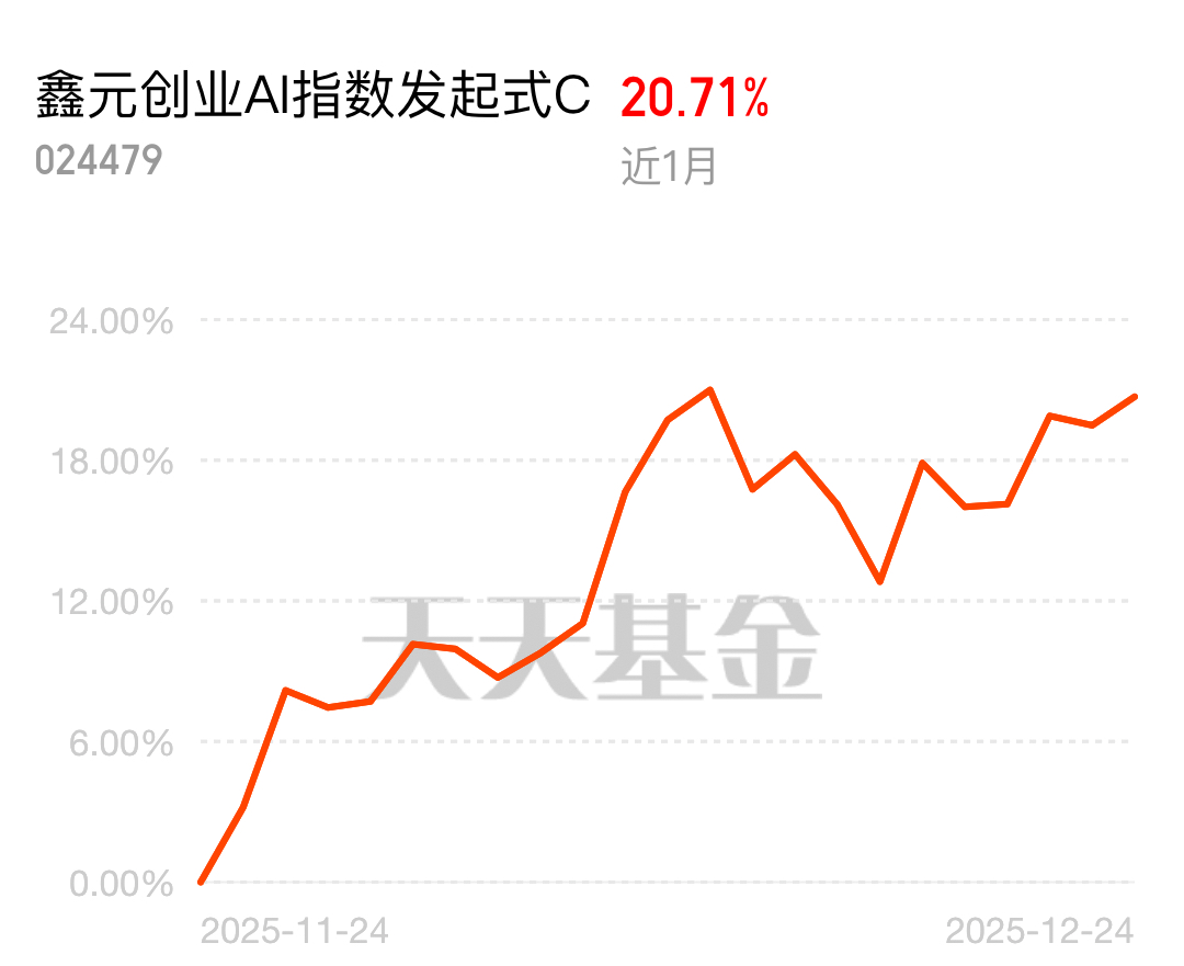 AI跨年行情燃爆!$鑫元创业AI指数发起式C$ 近日涨1.02%,近一个月涨20.17%算力+光模块双主线加持,风口直接冲~
