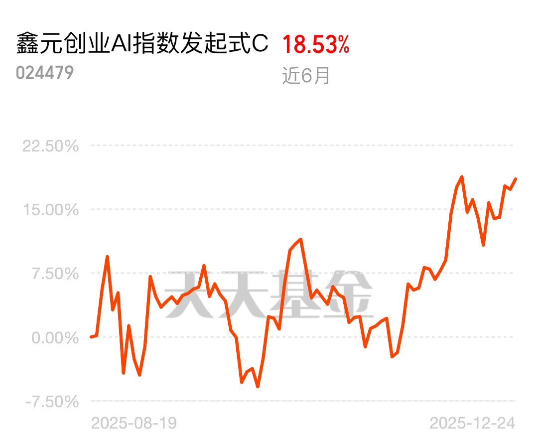 算力牛市挡不住 ,$鑫元创业AI指数发起式C$ 聚焦光模块+AI芯片核心资产,近1周涨2.67%、近6月收益18.53%,政策+资金双驱动,跨年行情稳稳抓