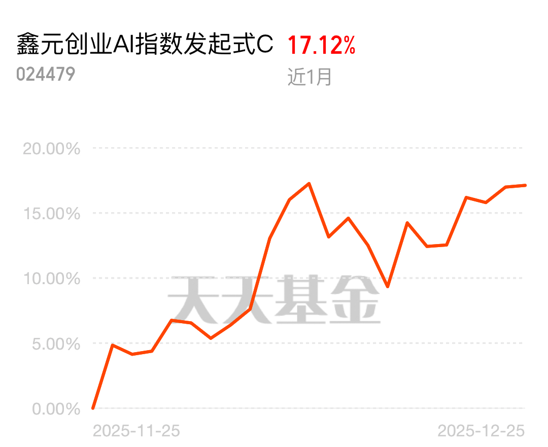 $鑫元创业AI指数发起式C$ 近1月狂涨17.12%,紧跟政策风口!