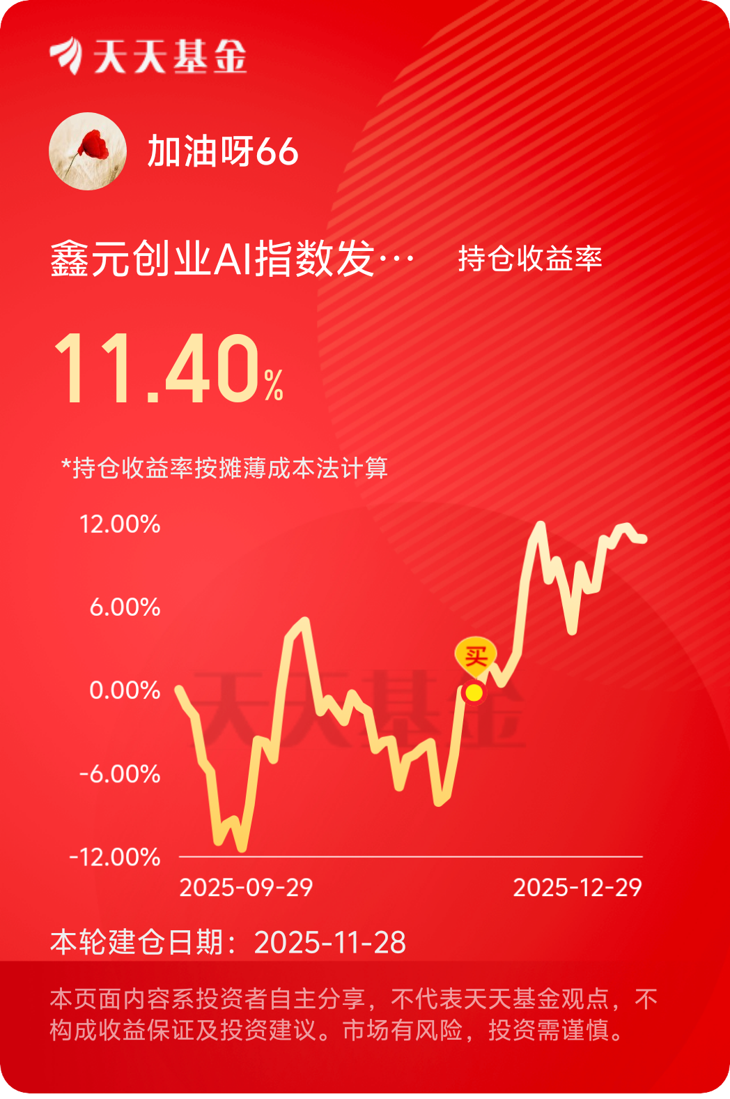 倒车接人,正是思考分批布局的窗口。$鑫元创业AI指数发起式C$ #晒收益#