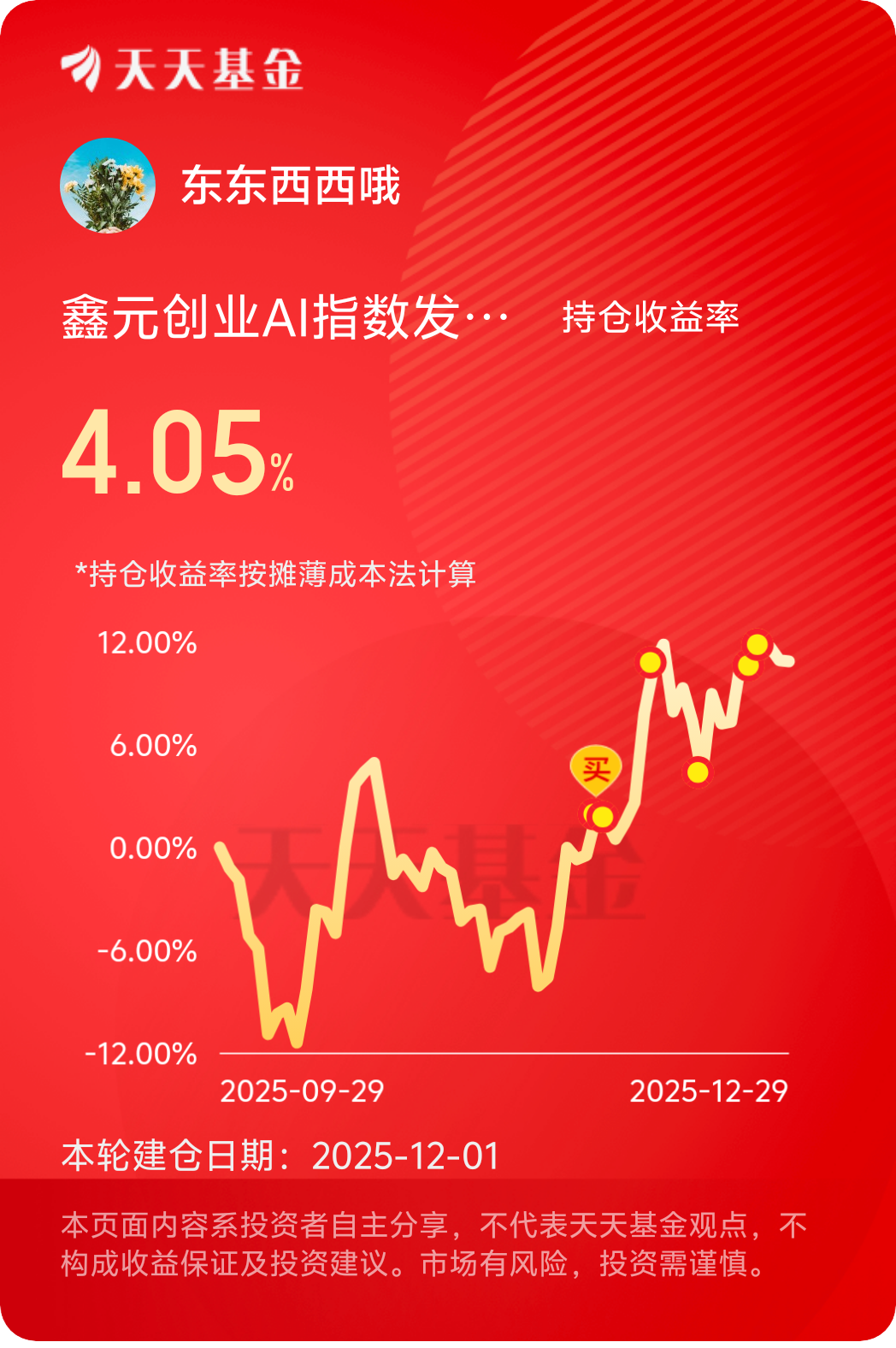 坚持自己的选择,定投走起,后期机会比较大的$鑫元创业AI指数发起式C$